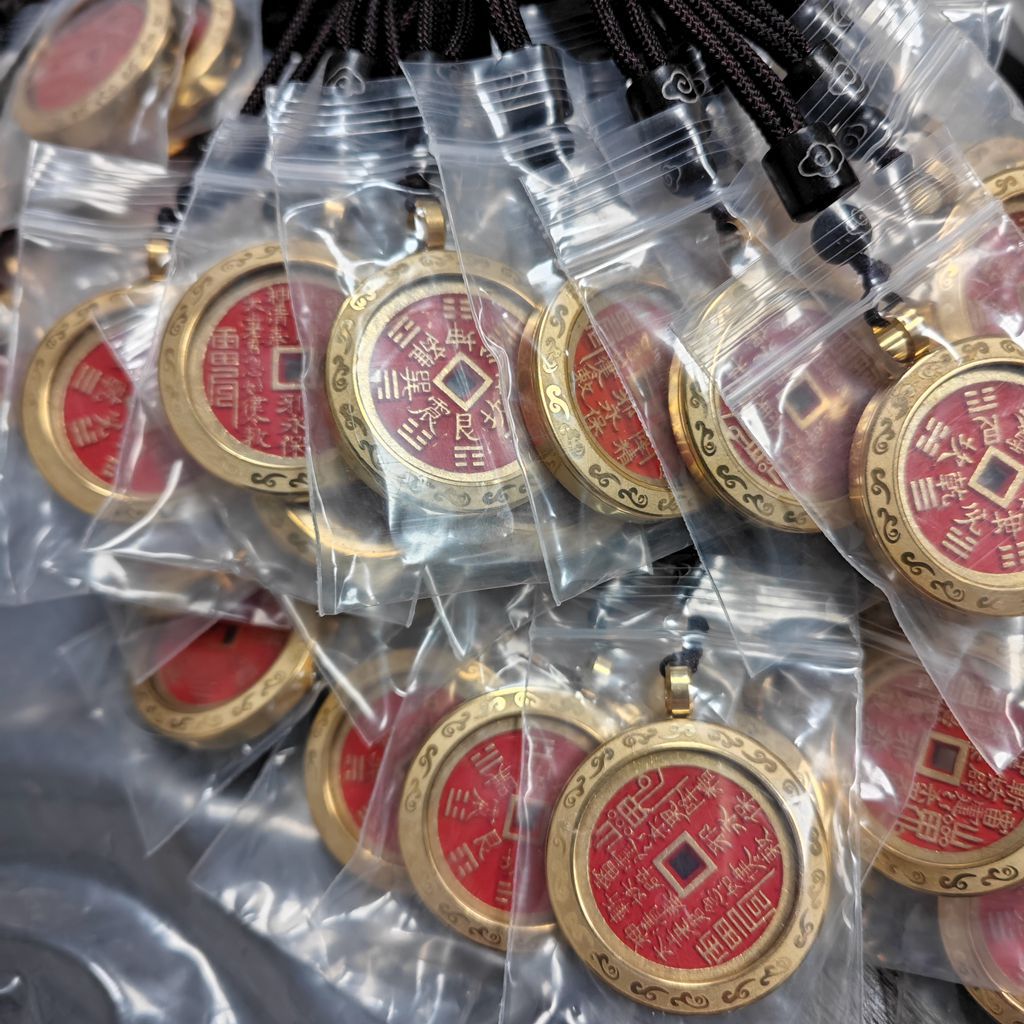 Brass Mountain Ghost Money Pendant Mountain Ghost Thunder God Bagua Cinnabar Copper Coin Old Antique Bronze Coin