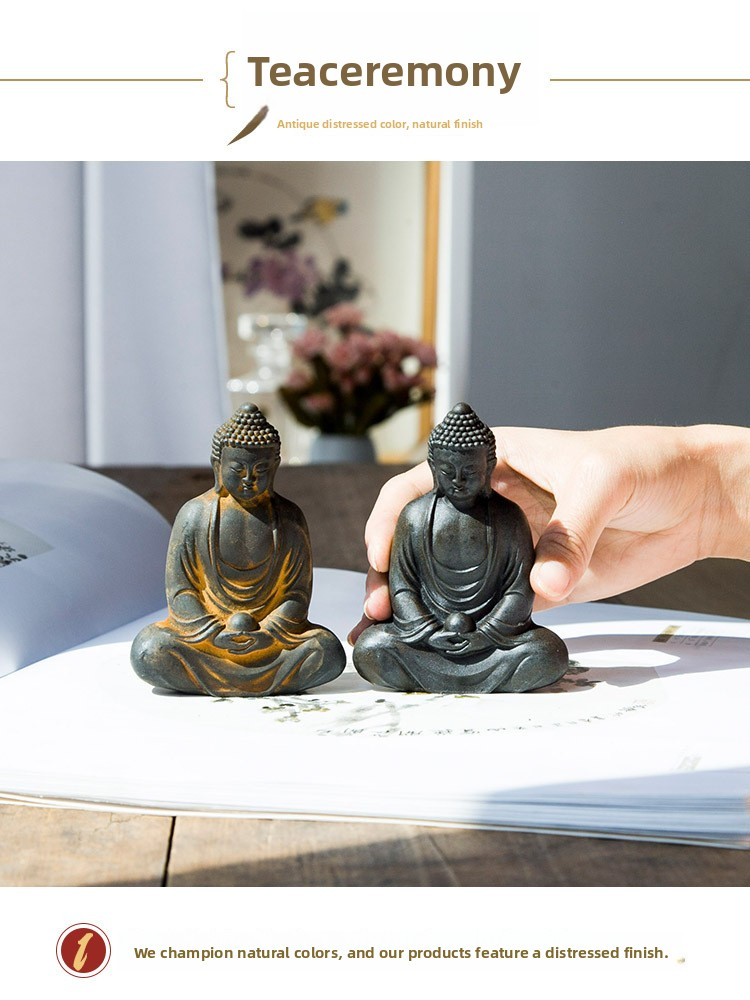 Chinese Zen-style Tathagata Buddha statue home decoration, retro and aged handicraft ornament