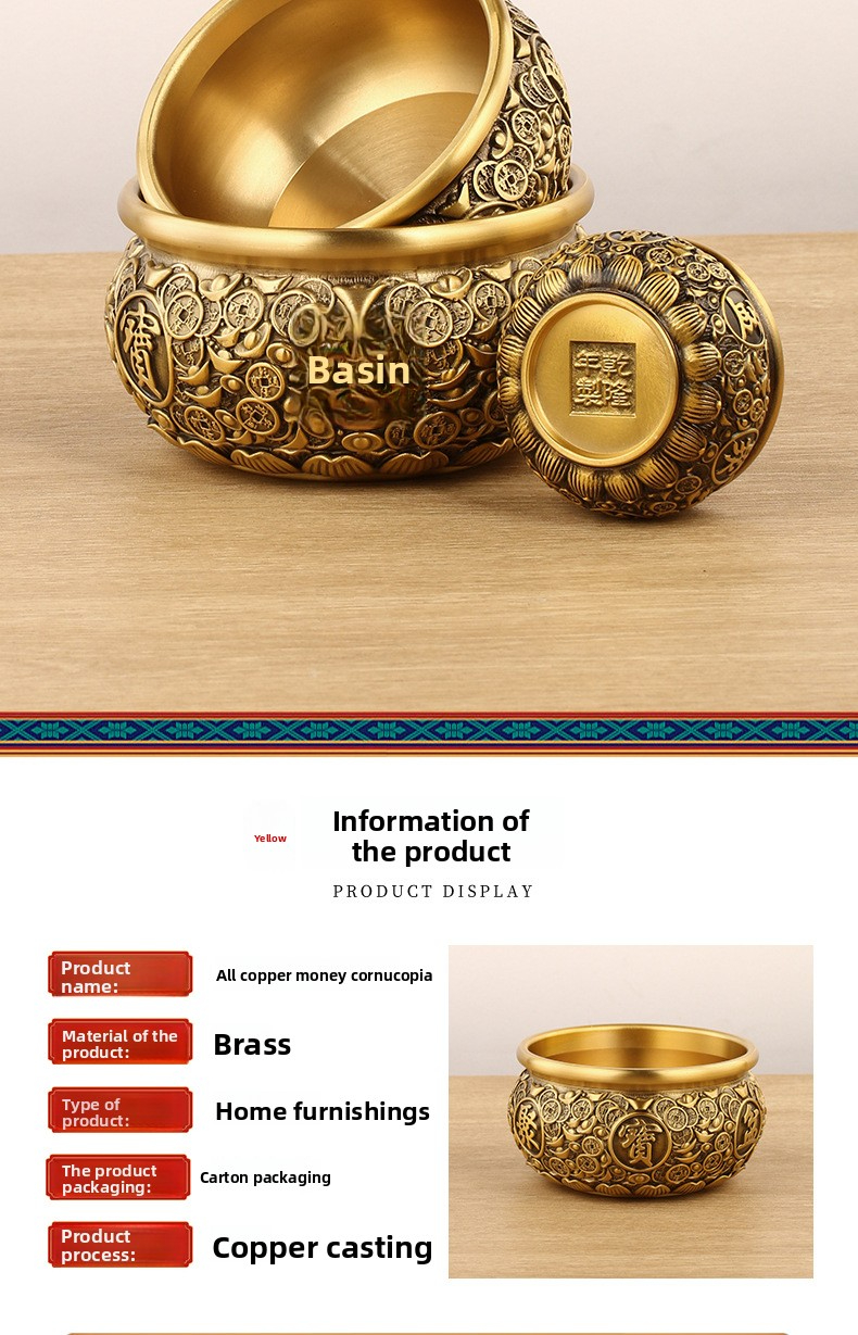 Solid copper cornucopia ornament, ingot cornucopia copper decoration for worship
