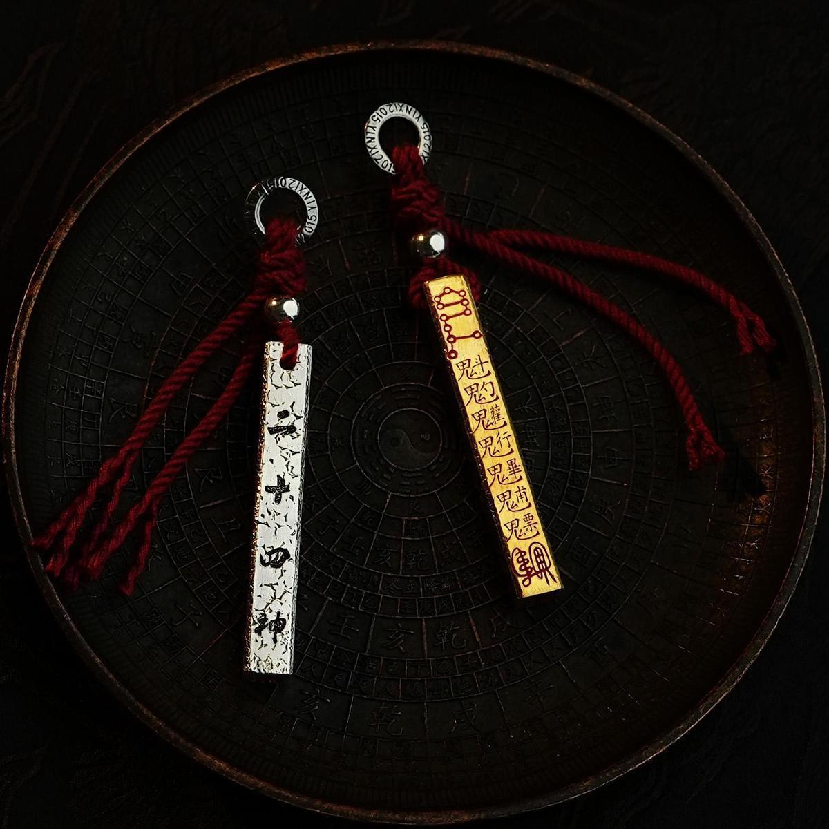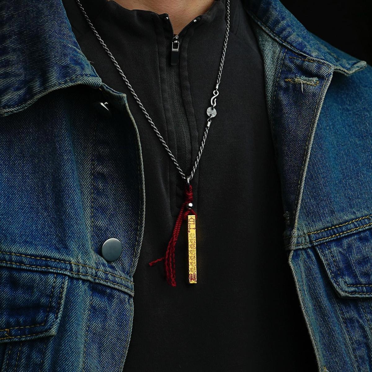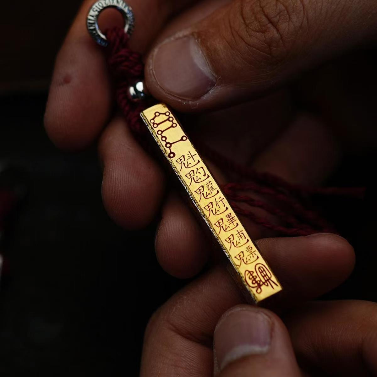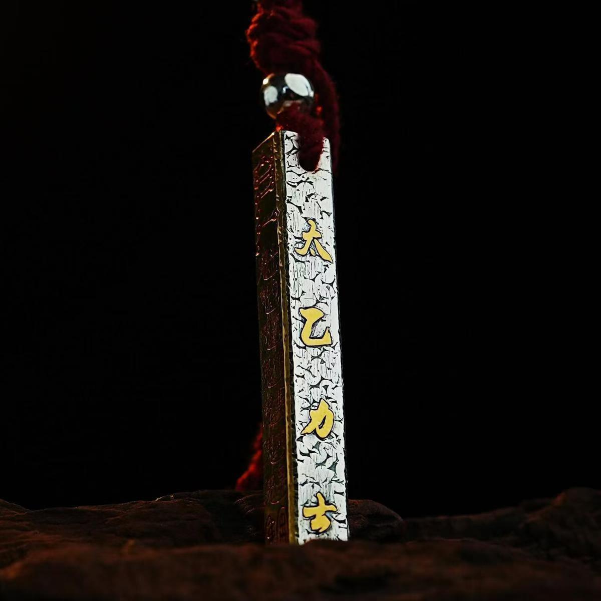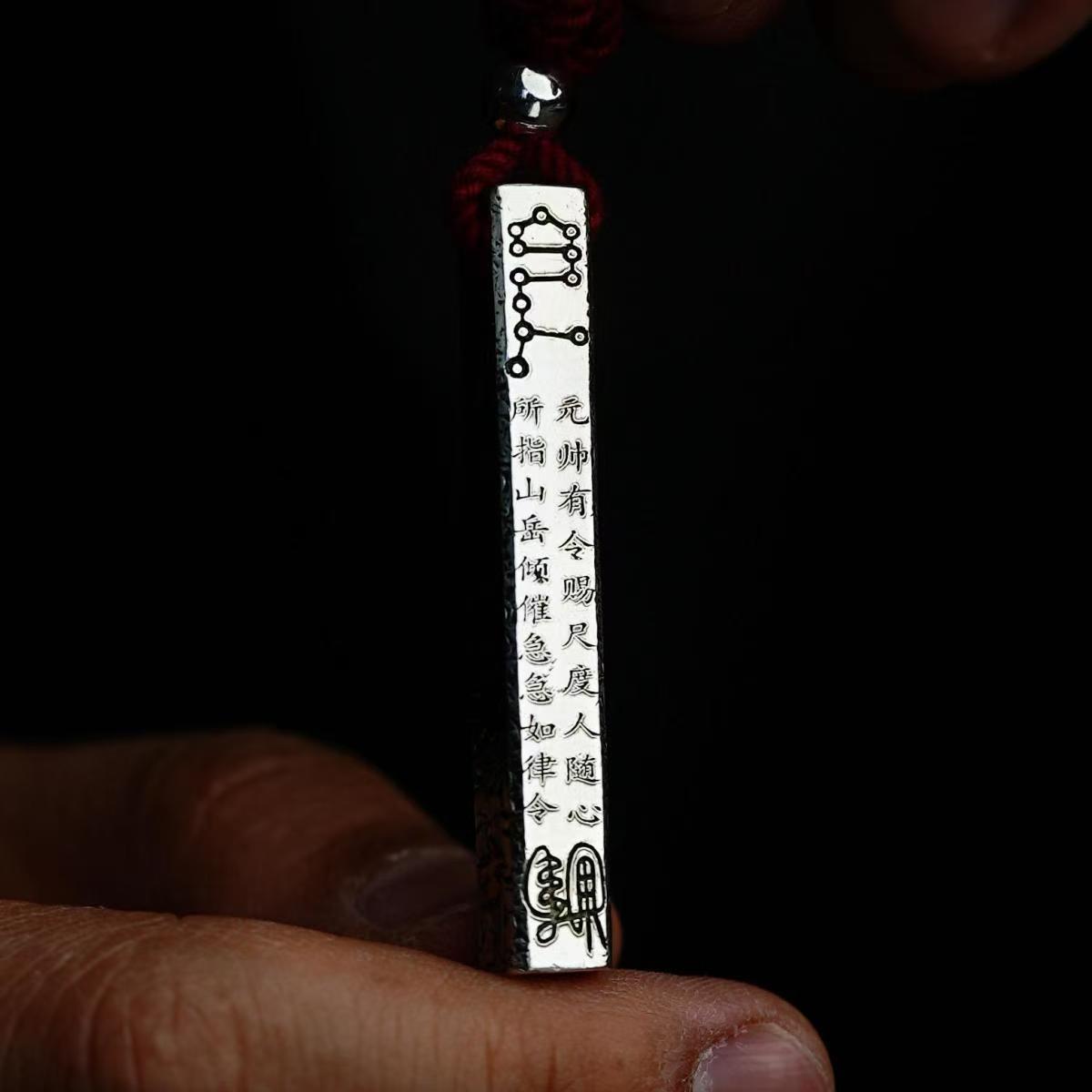 Vintage Taoist Hand-Carved Celestial Ruler Gold Engraving Plain Pendant Copper Silver Plated Personalized Hanging Ornament Domineering Necklace